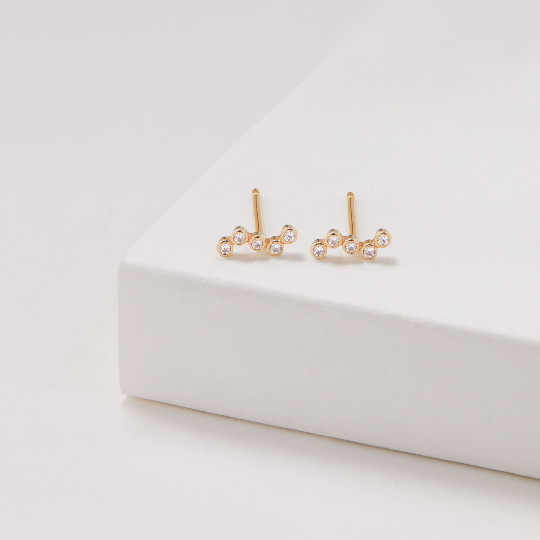 These Gold Diamond Style Wave Stud Earrings by Lily & Roo are a modern addition to your jewelry collection. With each crystal individually set, these earrings create a sleek wave design that adds a touch of sparkle to any outfit. Ideal for both casual and formal occasions, they can be stacked with other stud earrings or paired with pearl huggies to elevate your look.