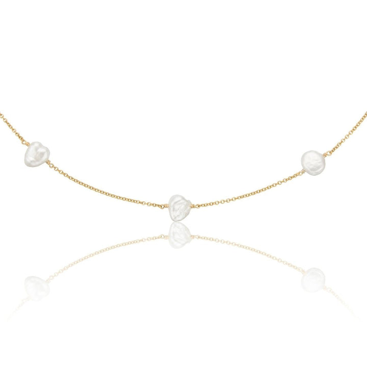 Solid 9K gold, featuring five baroque freshwater pearls. Also available in 925 sterling silver, 14K gold-filled, and 14K rose gold-filled finishes.