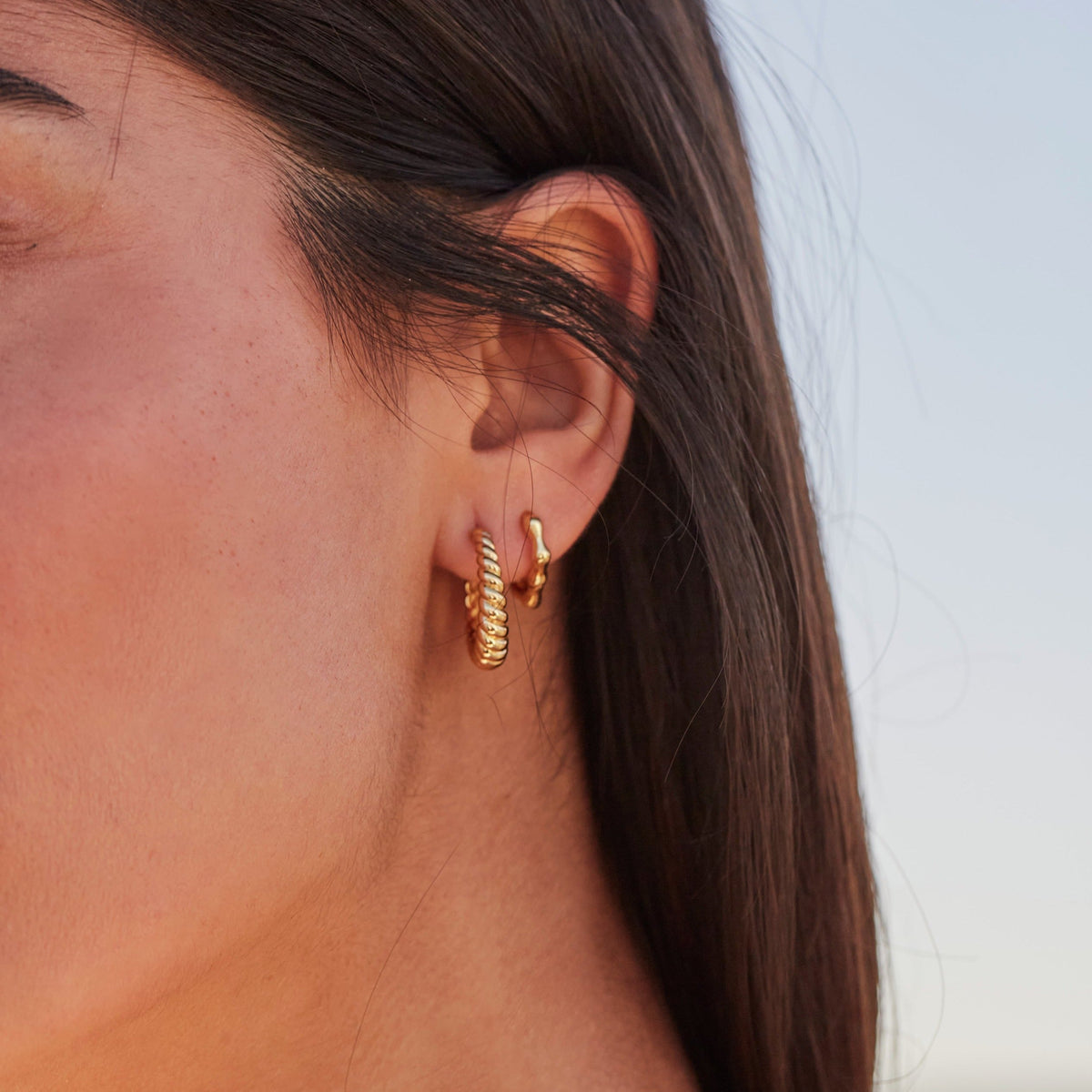 These Gold Large Twisted Rope Hoop Earrings by Lily & Roo are bold yet elegant, offering a subtle statement with their twisted rope design. These earrings can be worn on their own for a striking look or stacked with other hoops for extra impact. Crafted to last, these earrings bring a unique texture to your jewelry collection, elevating any ensemble.