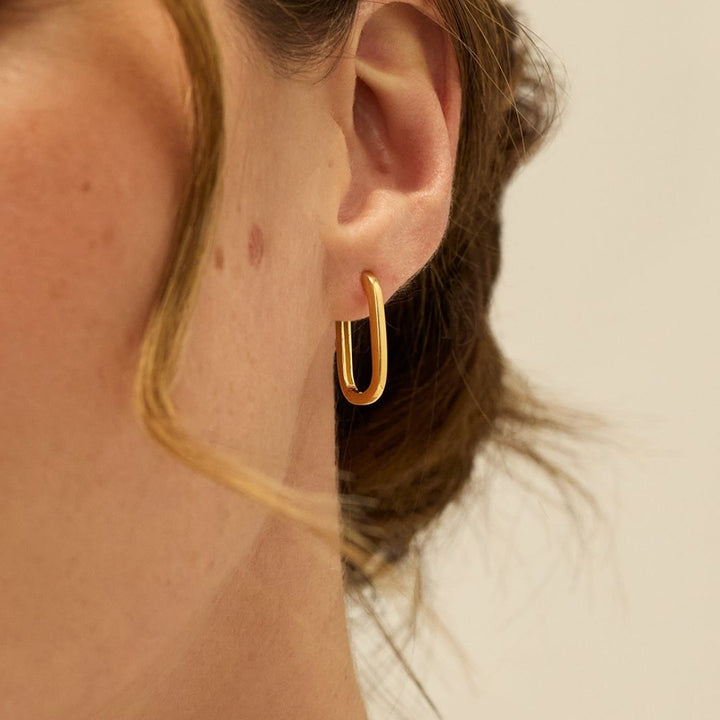 Gold Long Thin Plain Rectangle Hoop Earrings