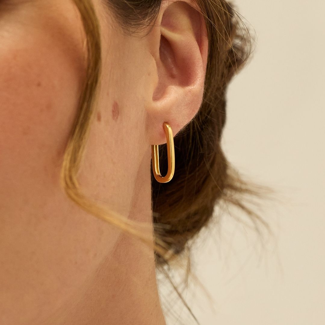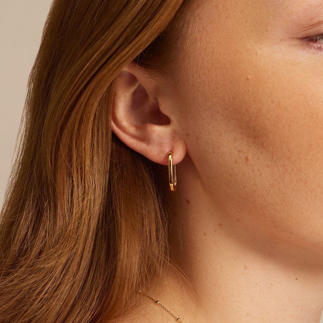 These Gold Long Thin Plain Rectangle Hoop Earrings by Lily & Roo are expertly crafted with 14ct gold plating and sterling silver, ensuring both durability and a timeless design. The sleek rectangular shape elevates any outfit, making these hoops perfect for daily wear or special occasions.