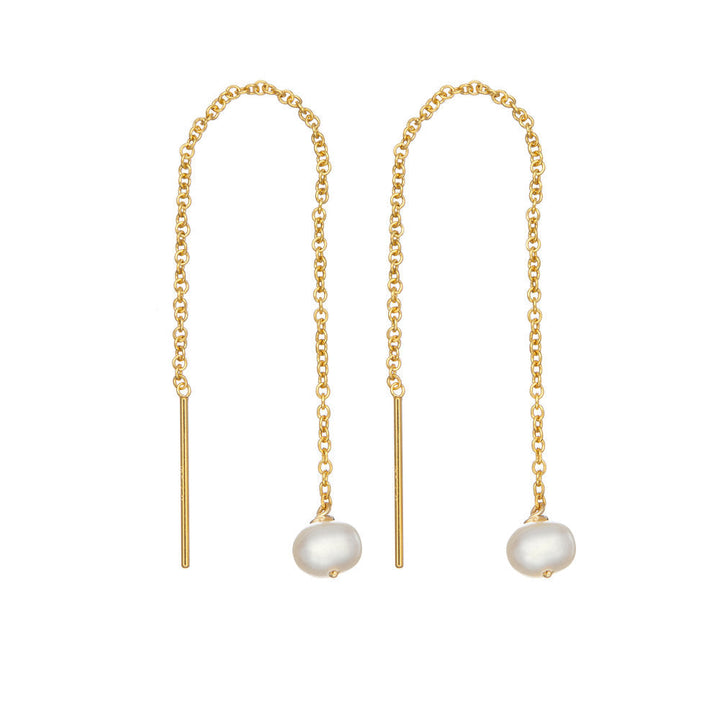 These Gold Pearl Drop Ear Threaders by Lily & Roo offer a unique and stylish design, featuring stunning freshwater pearls that create an elegant, minimalist look. Handmade in our London studio, these threader earrings are perfect for a bride or bridesmaid. The adjustable silicone backs ensure the perfect fit and allow for easy styling.