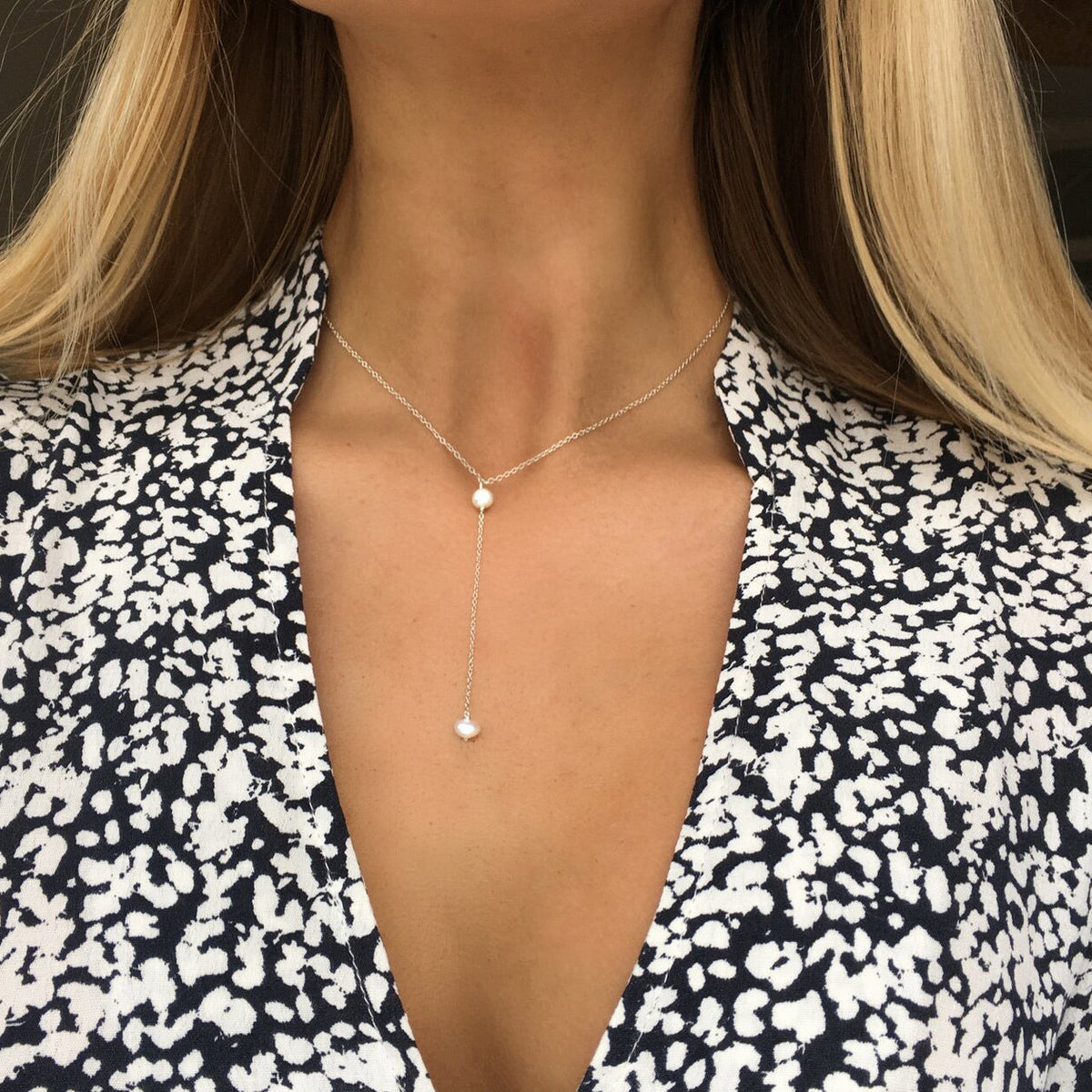 This Gold Pearl Lariat Necklace by Lily & Roo is a delicate and sophisticated piece, handmade with love in our London studio. Featuring ethically sourced freshwater pearls, this necklace is the perfect addition to any bridal ensemble or as a thoughtful gift for bridesmaids. Its lariat design adds a timeless elegance.