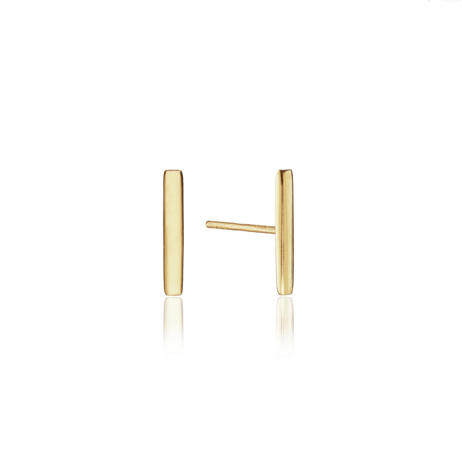 These Gold Plain Bar Stud Earrings by Lily & Roo are sleek and minimalist, making them a versatile addition to any jewelry collection. These studs can be worn either vertically or horizontally, offering different styling options depending on your mood or outfit. Crafted from solid sterling silver and plated with 18ct gold, these earrings can be worn alone or stacked with other pieces.