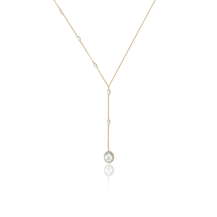 This Gold Seed Pearl Lariat Necklace by Lily & Roo is a perfect blend of elegance and timeless beauty. Featuring large and seed freshwater pearls, this necklace is handmade with love in our London studio. Its eye-catching lariat design brings a sophisticated touch to any bride’s attire or makes a beautiful gift for someone special. The delicate pearls catch the light, adding a luxurious shimmer that elevates any look. A truly unique piece for special occasions or everyday wear, this necklace is a stunning addition to any jewelry collection.