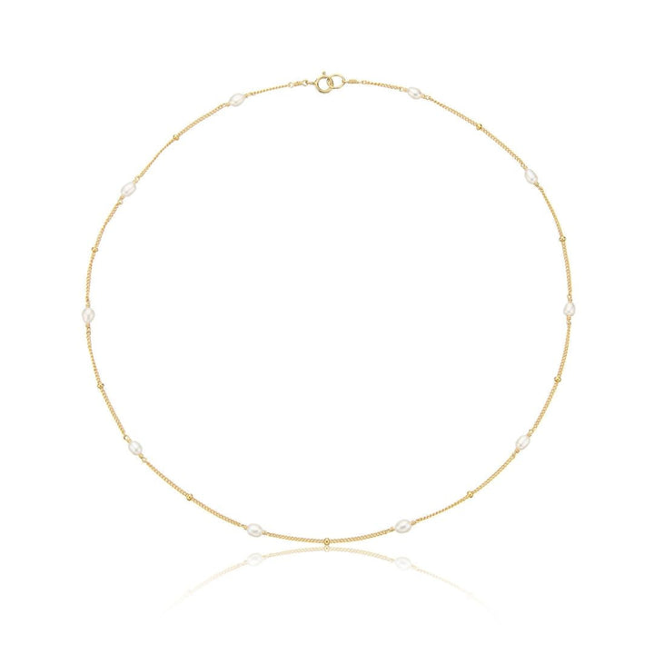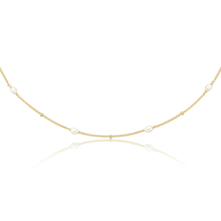 Handmade in 925 sterling silver or 14K gold filled, featuring freshwater seed pearls and a satellite chain design.