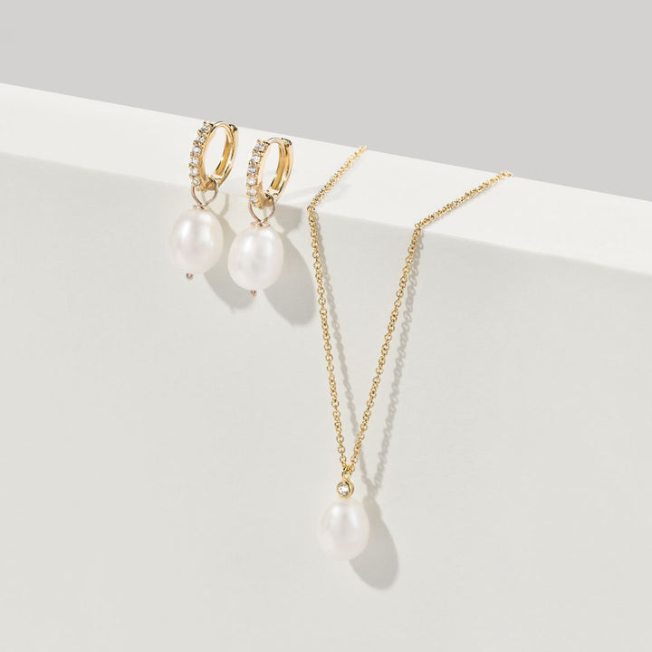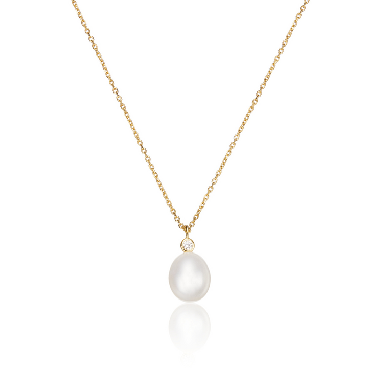 Gold Single Diamond Style Pearl Necklace