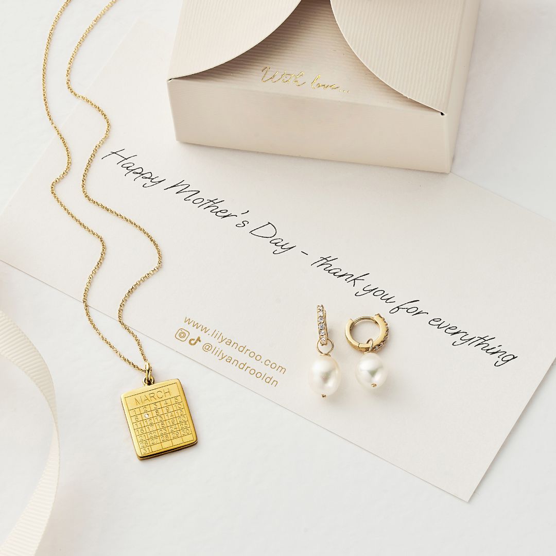 These Gold Special Date Calendar Necklaces by Lily & Roo are the ultimate expression of sentiment and sophistication. Designed to mark a significant date, this piece is engraved with a calendar and adorned with a meaningful gemstone of your choice. Whether celebrating a birthday, anniversary, or cherished moment, this necklace offers a heartfelt way to keep it close. Beautifully presented with a ‘find your meaning’ gemstone card and a luxury gift box, it’s perfect for gifting or personal wear. Each gemstone has its own symbolism, adding an extra layer of meaning to your chosen date. The handcrafted nature ensures each piece is distinct and special.