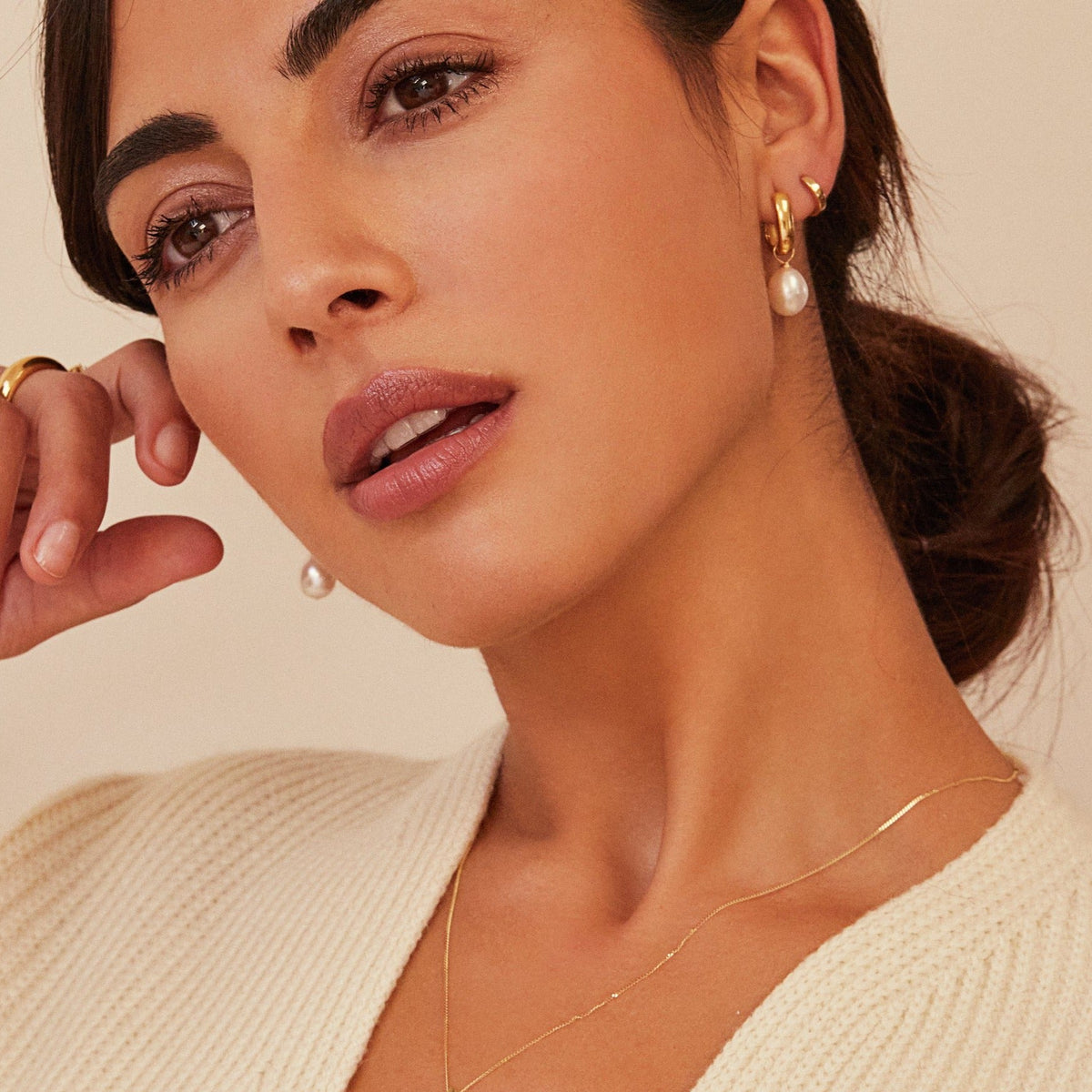18ct gold-plated solid sterling silver, featuring genuine freshwater pearls. Uniform pearls are selected for a refined look, but an organic shape option is available upon request.