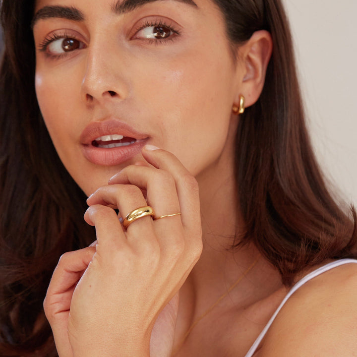 Crafted in solid sterling silver, plated with 18ct gold. Available in small (size K), medium (size M), and large (size P).