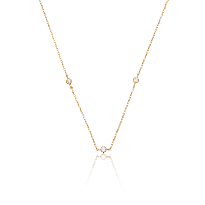 Available in solid sterling silver or 14ct gold plated sterling silver, featuring three pavé set crystals. Chain is adjustable from 16 inches (41cm) to 18 inches (46cm).