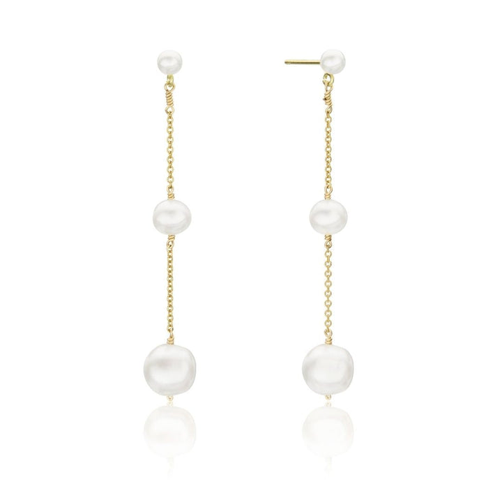 Available in 925 sterling silver, 14K gold-filled, or solid 9K gold. Featuring three freshwater pearls in a graduated design.