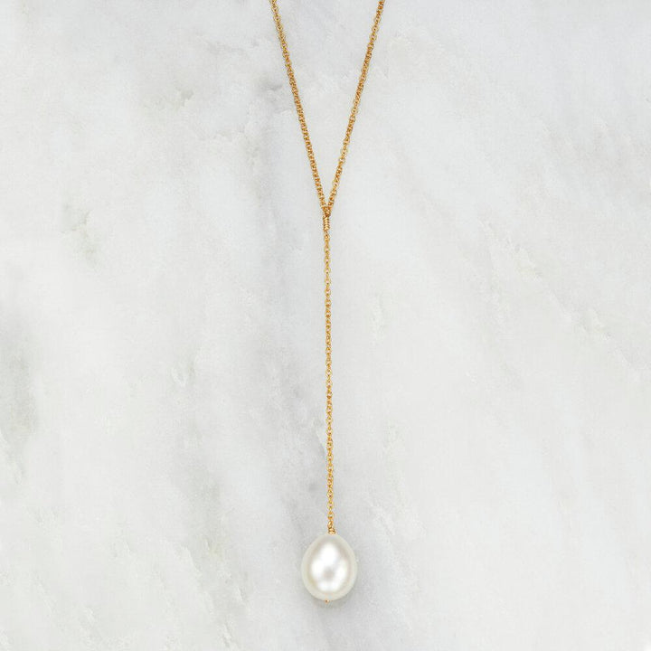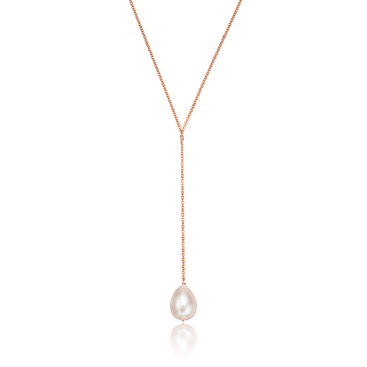 Rose Gold Large Pearl Lariat Necklace