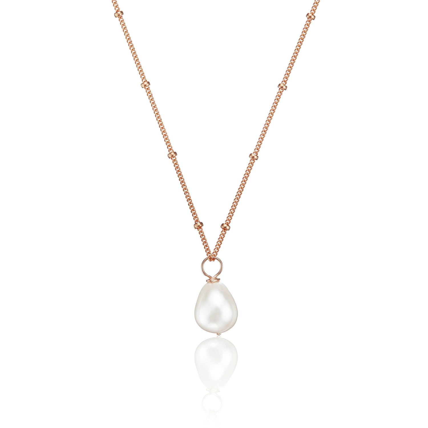 This Rose Gold Large Pearl Satellite Necklace by Lily & Roo is the perfect accessory for a bride on her wedding day. Handmade with care, this necklace features a beautiful large freshwater pearl set on a rose gold satellite chain. The versatile design allows it to transition from a bridal piece to an everyday accessory, making it a timeless addition to any jewelry collection.