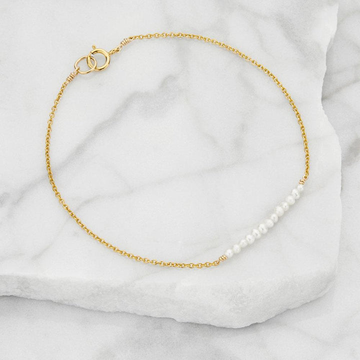 Handmade in solid rose gold, featuring a small cluster of freshwater pearls. Available in solid sterling silver, a range of filled and solid 9ct golds.