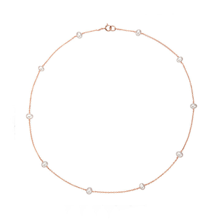 This Rose Gold Ten Pearl Choker by Lily & Roo adds a touch of elegance to any outfit, perfect for brides or bridesmaids. Featuring ten genuine freshwater pearls, this choker is handmade in our London studio with an eye for quality and design. The simplicity of the design allows it to complement both casual and formal outfits, making it a versatile piece that can be worn for a wedding or any special occasion.