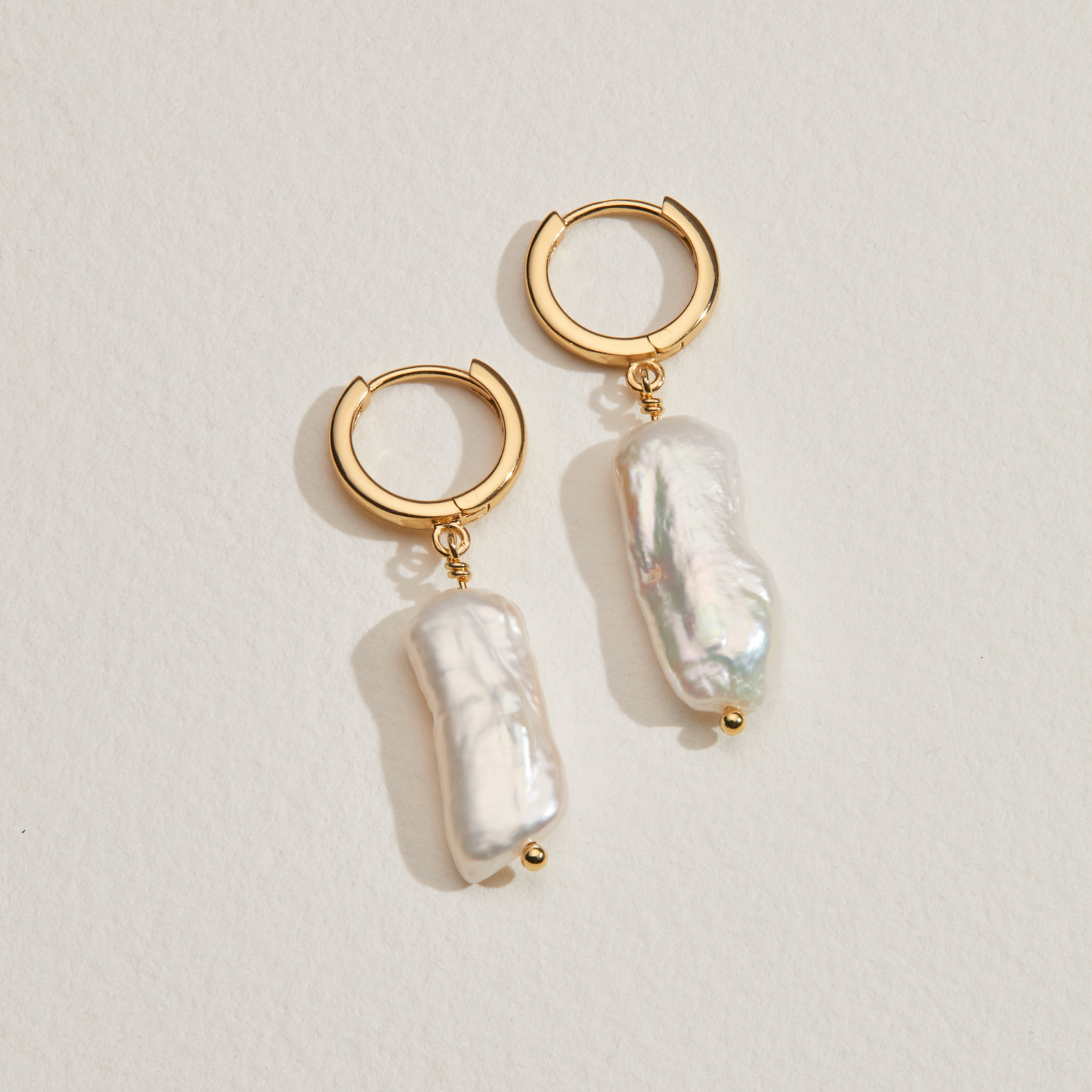 Available in solid sterling silver or 18ct gold plated sterling silver, featuring baroque pearl shards.