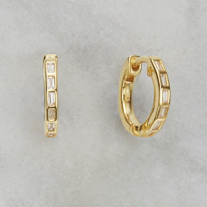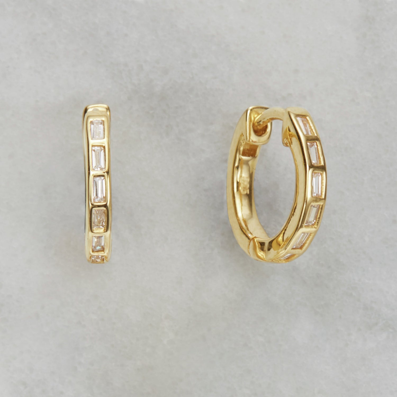 Available in solid sterling silver or 18ct gold-plated sterling silver, featuring baguette crystals.