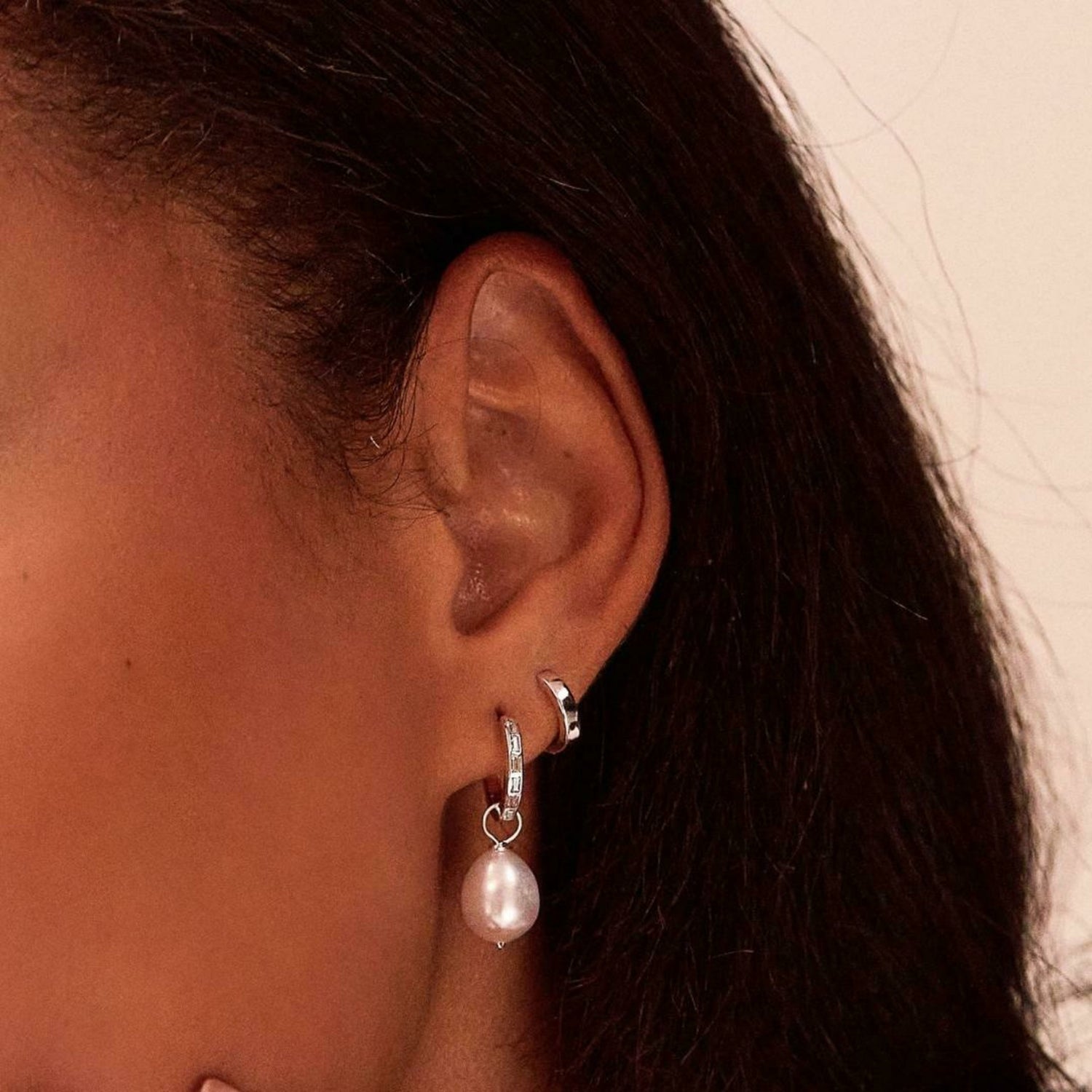 Available in solid sterling silver or 18ct gold plated sterling silver. Features a row of baguette crystals and removable freshwater pearls.