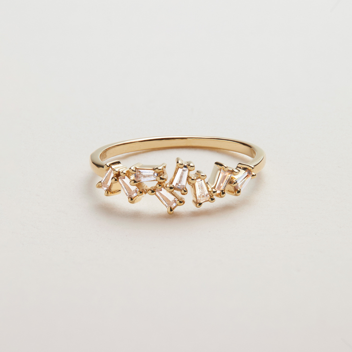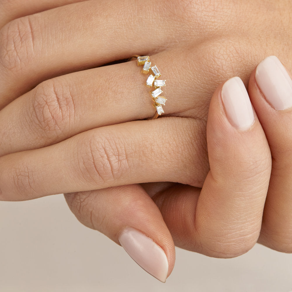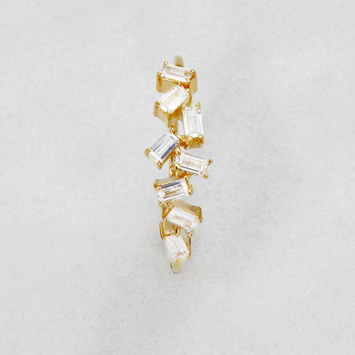 This Silver Diamond Style Baguette Ring by Lily & Roo is a timeless piece that will complement any outfit, adding just the right amount of sparkle. Featuring diamond-style baguette crystals in a beautifully detailed uneven format, this ring combines elegance with an edgy design, making it the perfect piece to wear from day to night.
