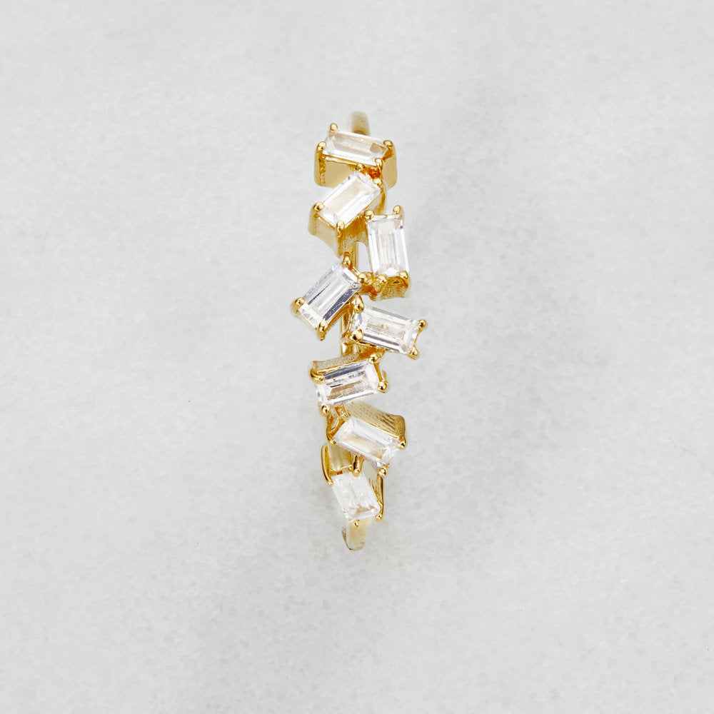 Available in solid sterling silver and 14ct gold-plated sterling silver, featuring diamond-style baguette crystals.