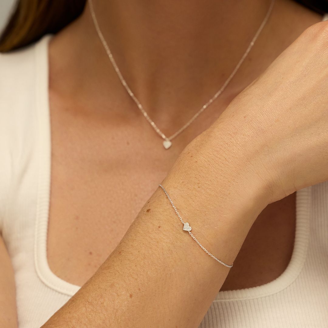 This Silver Diamond Style Cluster Heart Bracelet by Lily & Roo is a timeless and elegant piece, featuring a delicate cluster design that adds a touch of sparkle and sophistication to any outfit. Crafted from high-quality 925 sterling silver, this bracelet is the perfect gift for someone special, offering both beauty and durability. The elegant heart design makes it ideal for both everyday wear and special occasions.