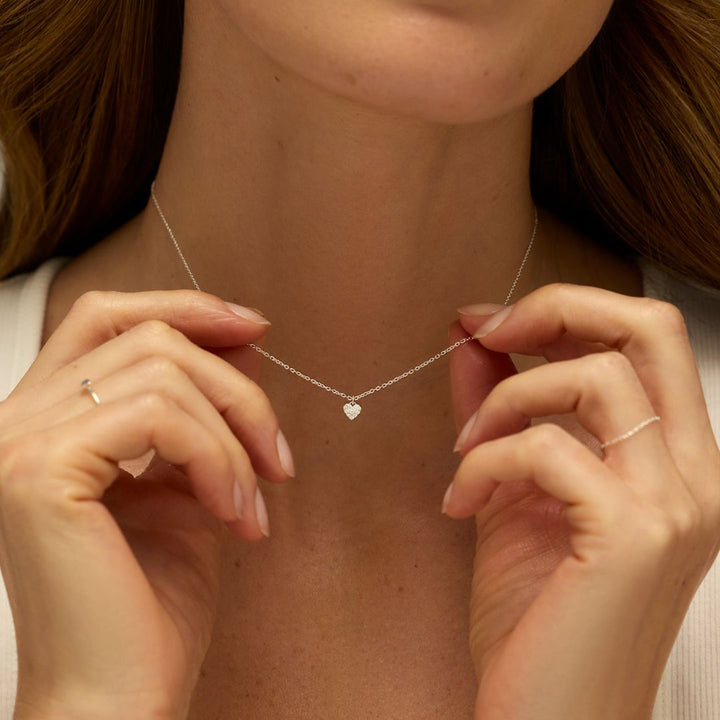 Available in solid sterling silver or 14ct gold plated sterling silver, featuring pavé set crystals in a heart-shaped design.