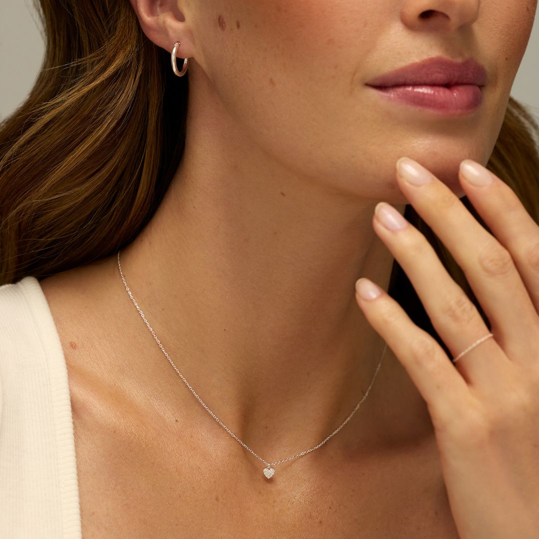 This Silver Diamond Style Cluster Heart Necklace by Lily & Roo is a charming and elegant addition to your jewelry collection. Featuring a heart design with subtle sparkle from pavé set crystals, this necklace adds a touch of romance and sophistication. Whether worn for a special occasion or as an everyday accessory, this necklace is versatile and timeless. Pair it with the matching earrings and bracelet for a complete set.