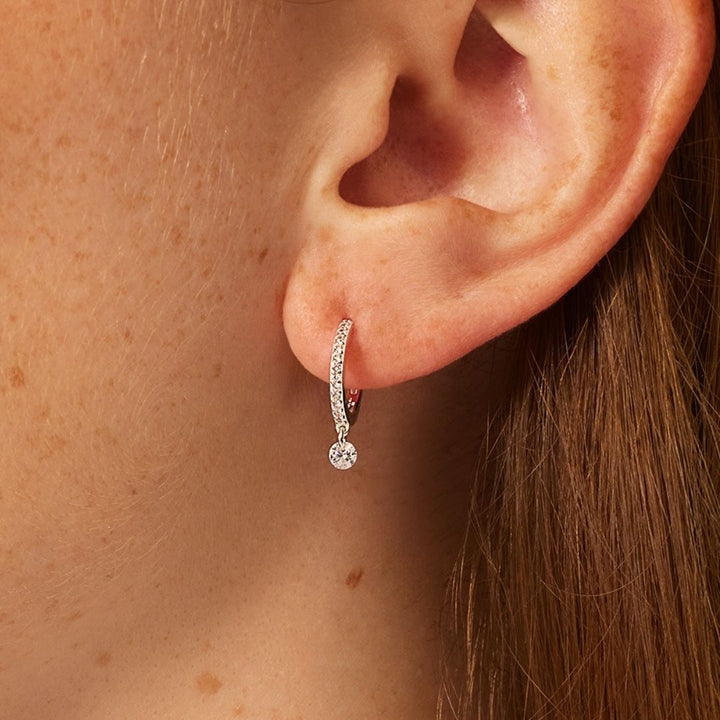 Available in gold-plated or 925 sterling silver. Featuring diamond-style accents and a single stone drop.