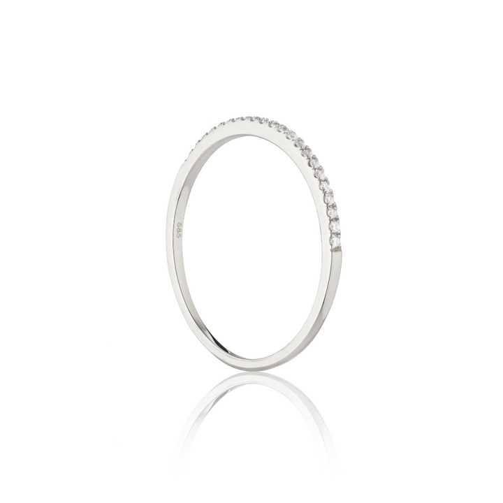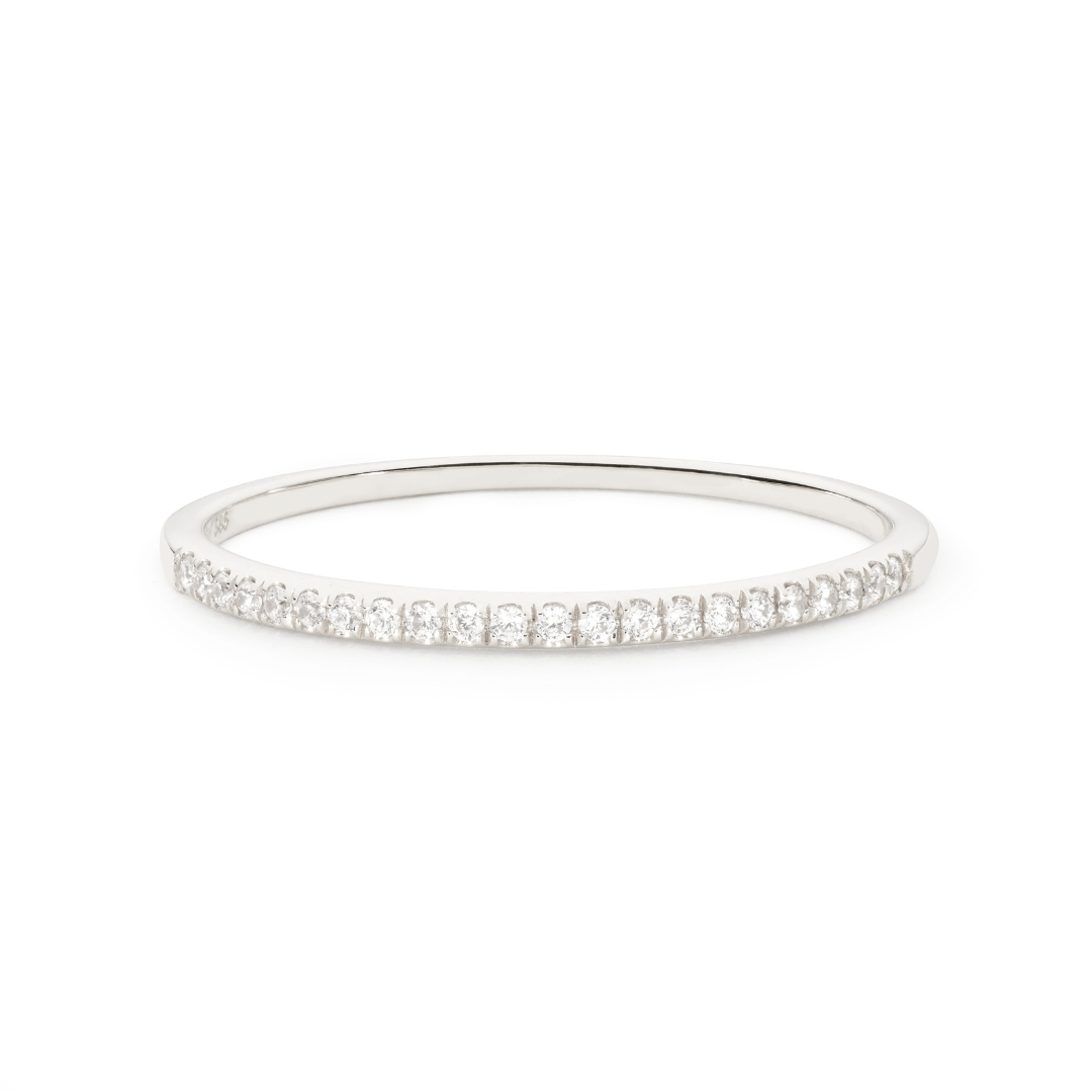 This Silver Diamond Style Half Eternity Ring by Lily & Roo is a dazzling and timeless piece that adds sparkle to any jewelry collection. The ring features a row of individually set pavé crystals that shimmer beautifully in the light. Perfect for stacking or wearing alone, this piece is a staple for both casual and formal wear.
