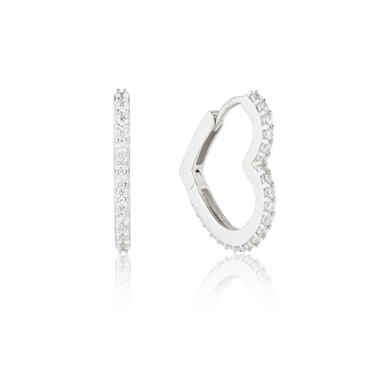 Silver Diamond Style Heart Huggie Hoop Earrings