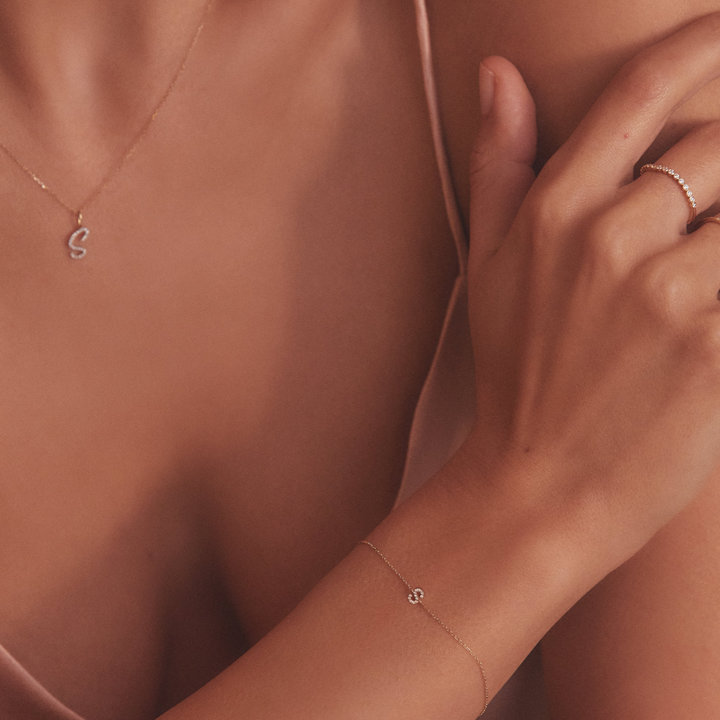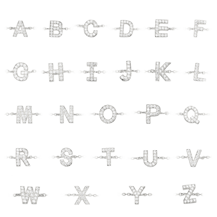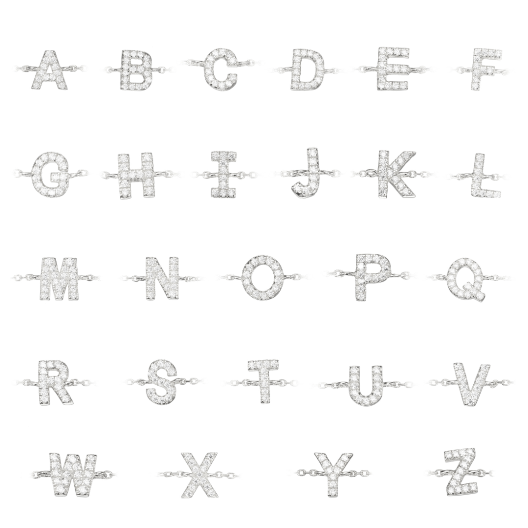 Silver Diamond Style Miniature Initial Letter Bracelet