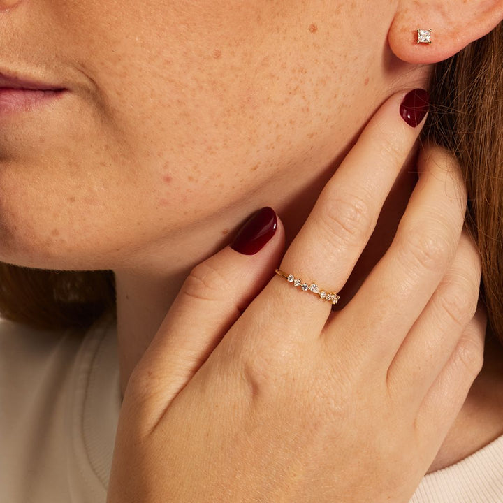 Available in solid sterling silver and 14ct gold-plated sterling silver. Featuring sparkling diamond-style stones in a mixed cluster design.