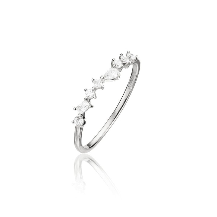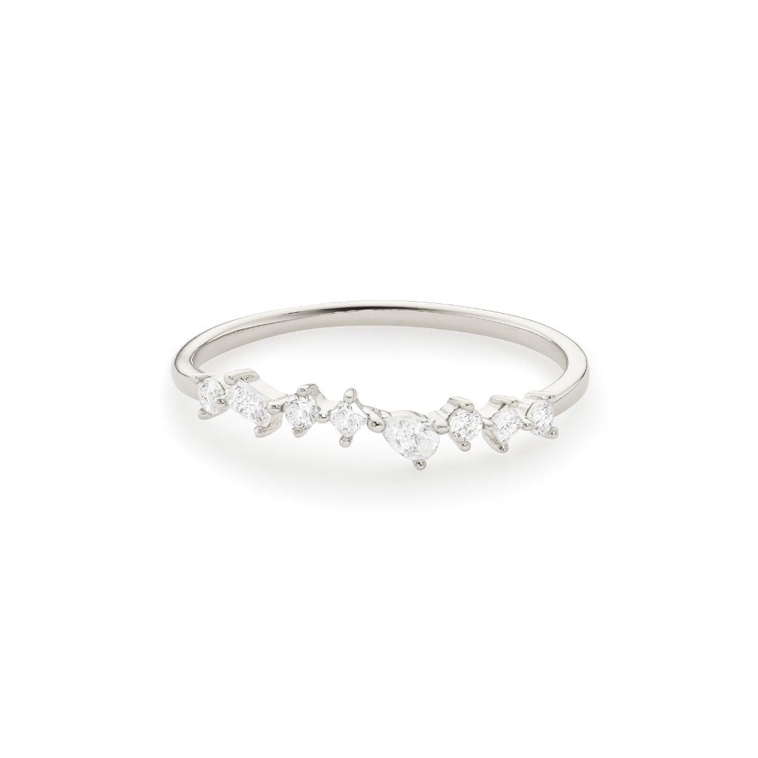 This Silver Diamond-Style Mixed Cluster Ring by Lily & Roo is a dazzling yet subtle statement piece, perfect for any occasion. The mixed cluster design of sparkling diamond-style stones creates a unique and elegant effect. Crafted in high-quality silver, this ring is ideal for stacking or wearing alone, adding just the right amount of sparkle to any outfit. Its timeless design ensures that it remains a cherished piece in your collection.