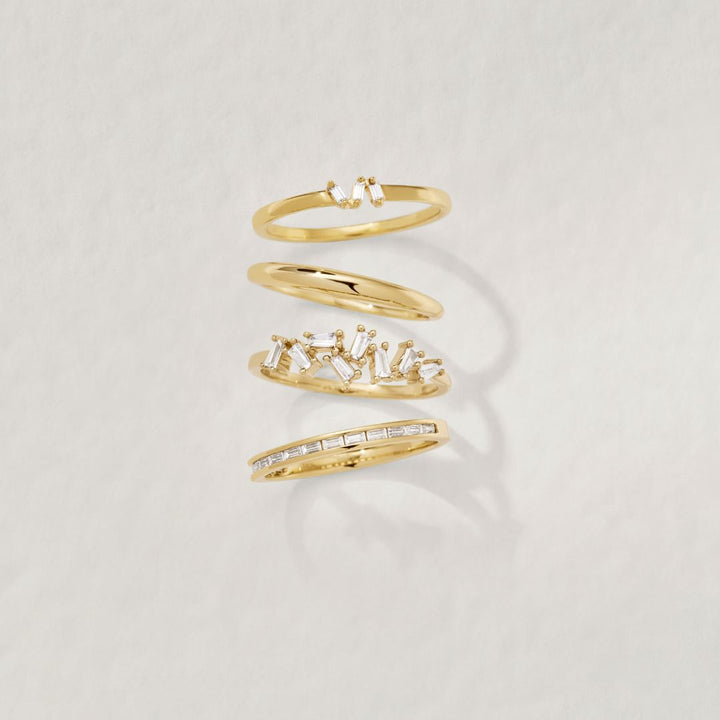 Available in solid sterling silver or 14ct gold plated sterling silver, featuring three baguette-style crystals.