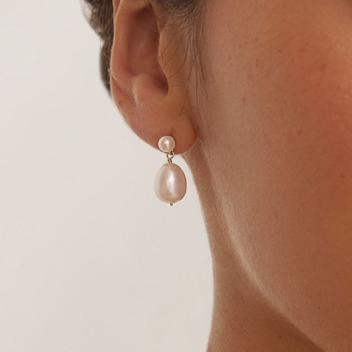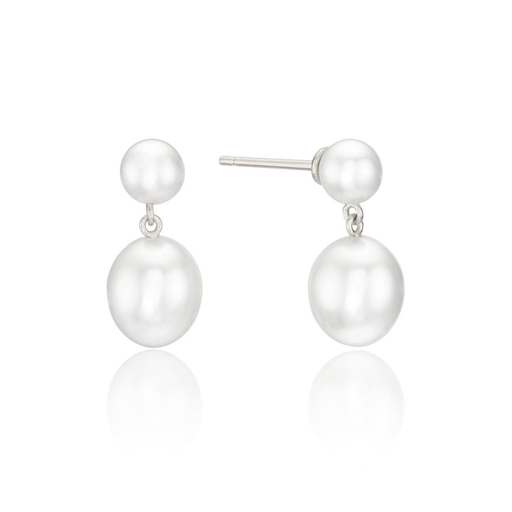 Available in 925 Sterling Silver, 14K Gold Plated Silver, or Solid 9K Gold. Featuring two freshwater pearls with a secure stud and butterfly backing.