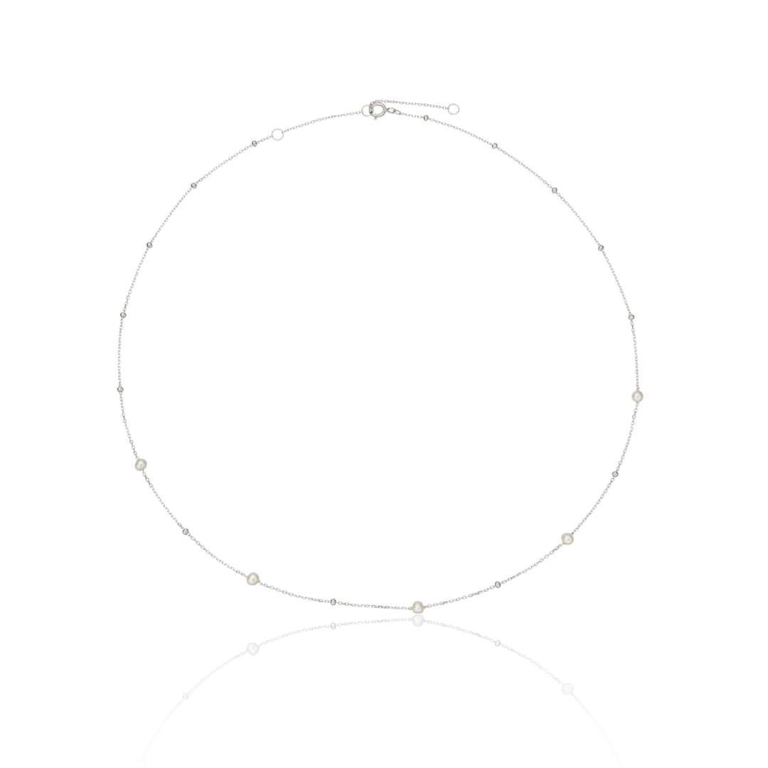Silver Five Pearl Satellite Necklace