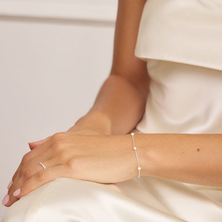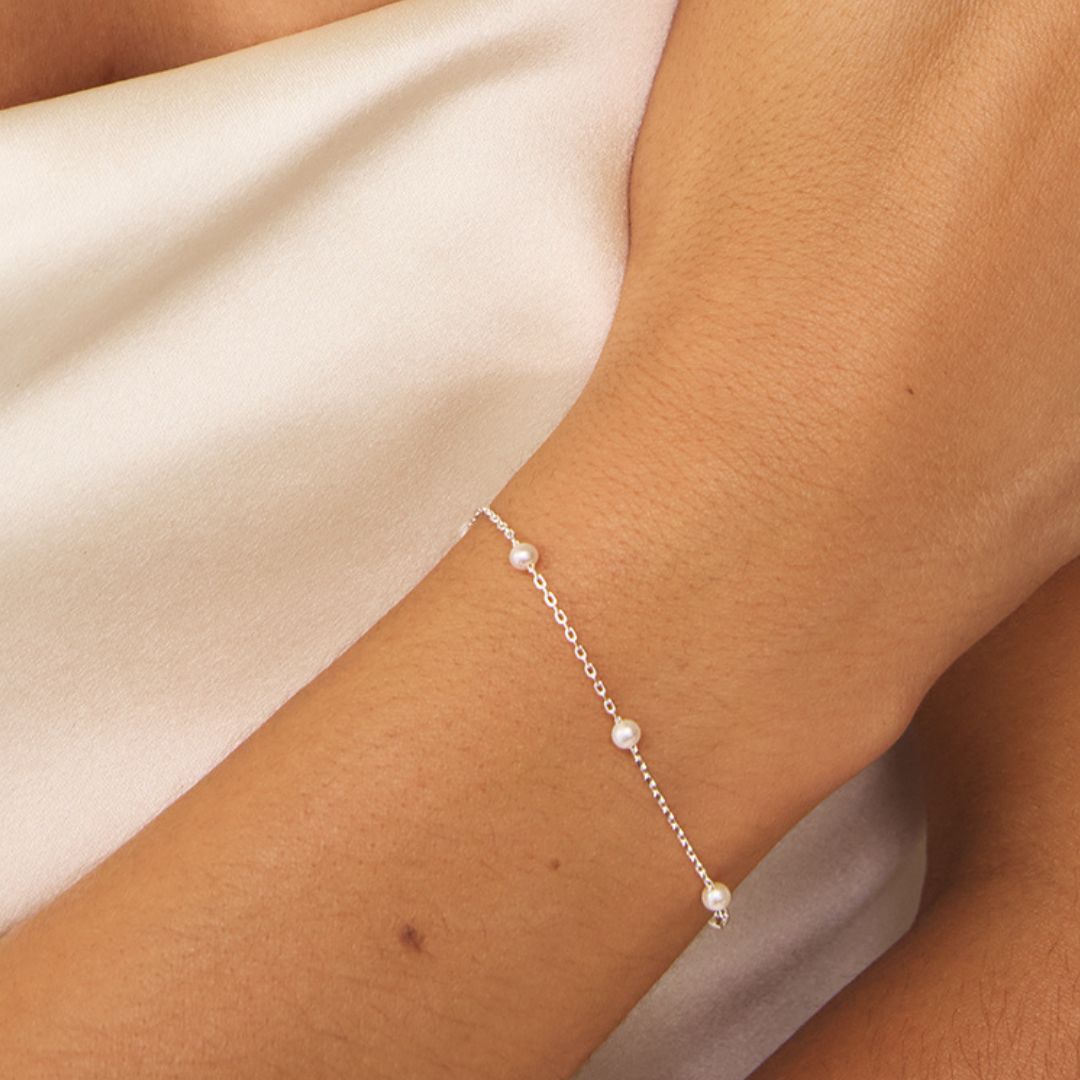 This Silver Five Small Pearl Bracelet by Lily & Roo features five delicate freshwater pearls that add a touch of sophistication to any look. Perfect for weddings, anniversaries, birthdays, or as a thoughtful gift, this bracelet is as versatile as it is elegant. The adjustable chain ensures a comfortable fit for various wrist sizes, making it suitable for both formal events and everyday wear. Whether you're seeking bridal jewelry or a refined accessory for daily outfits, this pearl bracelet is a must-have addition to your jewelry collection.