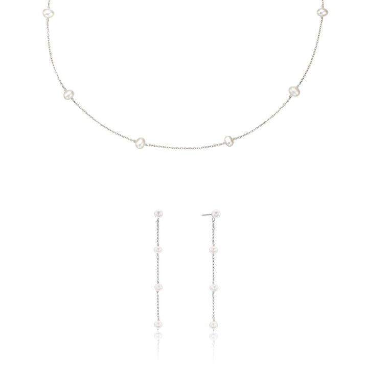 Silver Four Pearl Drop Earrings and Ten Pearl Choker Gift Set
