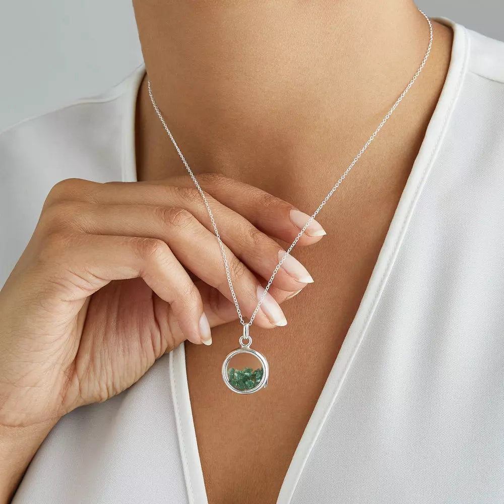 This Silver Glass Gemstone Locket by Lily & Roo is a timeless and customizable keepsake, designed to hold a selection of meaningful gemstones and sterling silver letter charms. Choose two stones that represent love, positivity, or calm, or select birthstones to symbolize cherished moments. A discreet side latch allows you to include small flat keepsakes, making this a truly personal piece. Accompanied by a ‘find your meaning’ gemstone card, this locket is perfect for gifting or as a sentimental addition to your own collection.