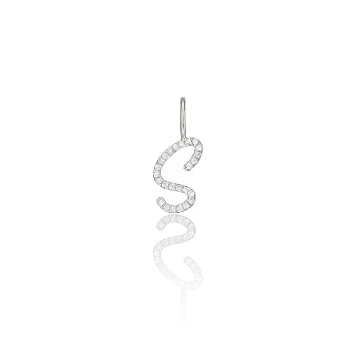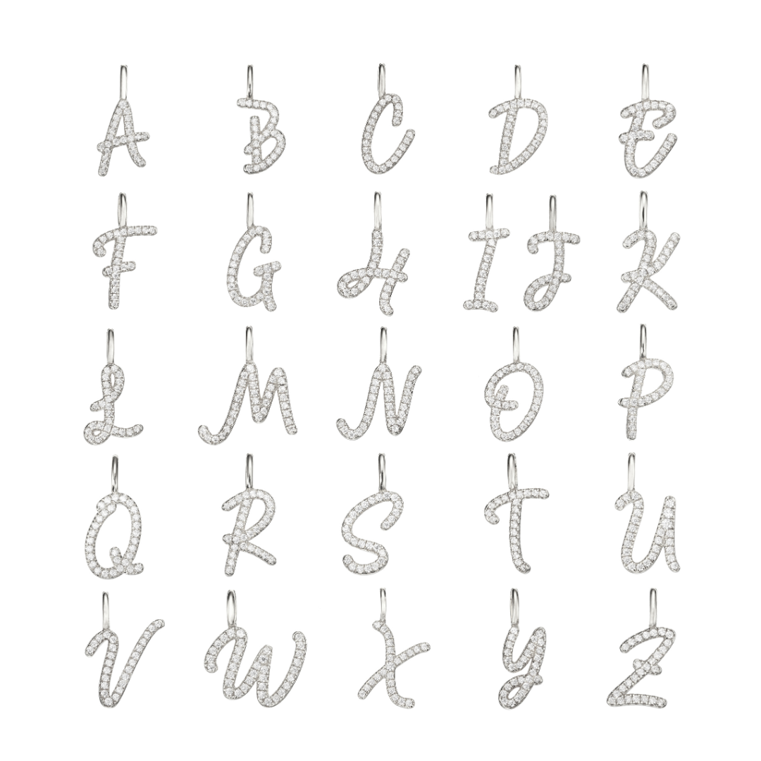 Silver Individual Diamond Style Curve Initial Charm