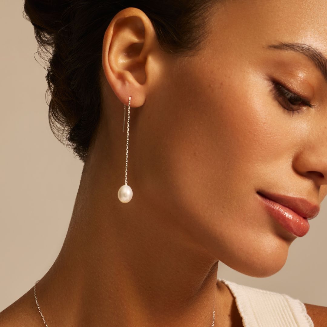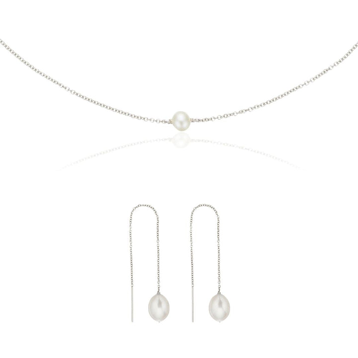 Silver Large Pearl Drop Ear Threaders and Single Pearl Choker Gift Set