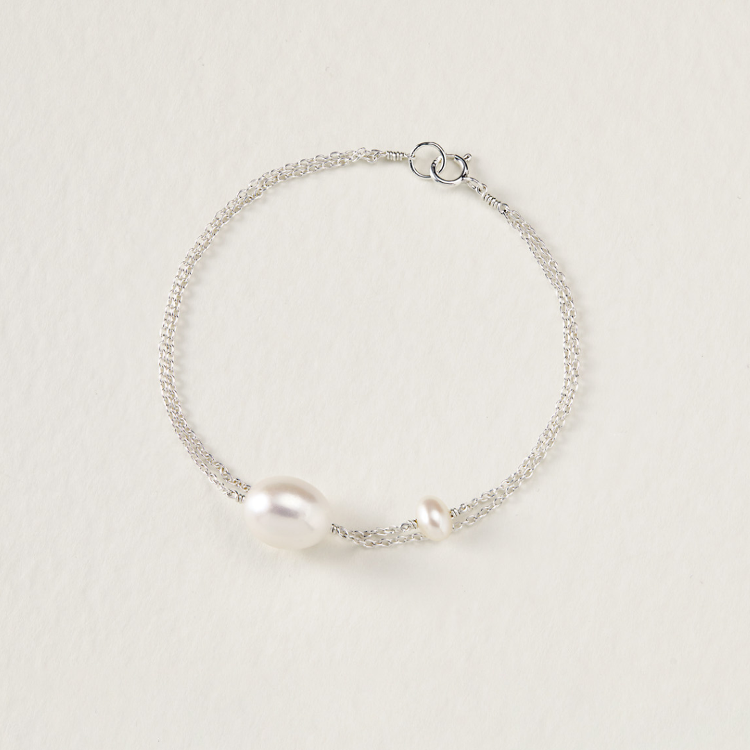 This Silver Layered Large and Small Pearl Bracelet by Lily & Roo is a beautiful blend of classic and contemporary design. The layered combination of large and small pearls, strung together on a solid sterling silver chain, creates a sophisticated and elegant piece that can be worn with any outfit. Handmade in our London studio, this bracelet is perfect for adding a touch of refinement to both casual and formal attire.