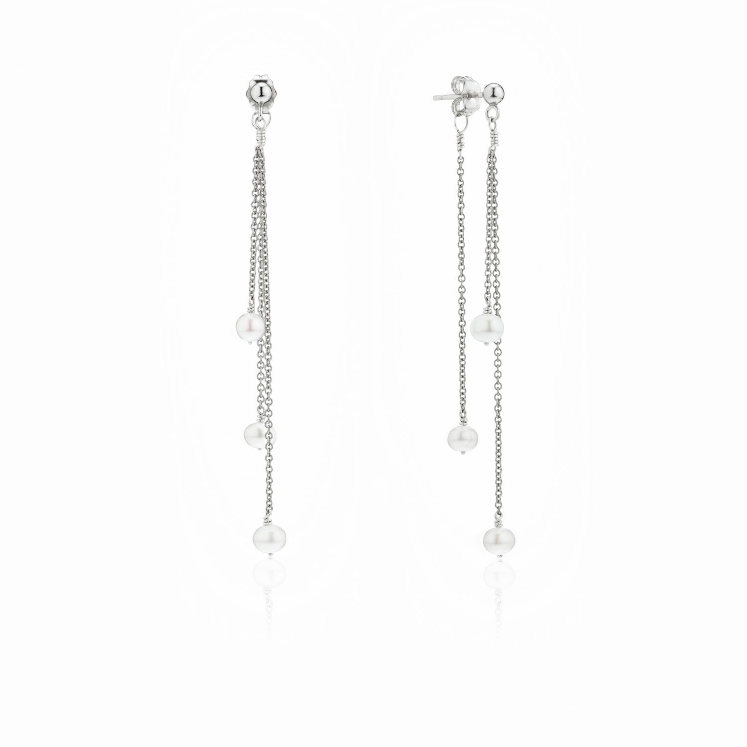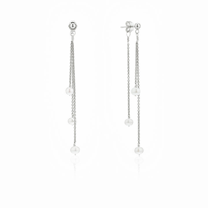 These Silver Layered Pearl Drop Earrings by Lily & Roo offer a refined, elegant look, with the layered pearls creating a stunning drop design. These earrings are ideal for brides on their wedding day or for adding a touch of elegance to an evening outfit. The delicate pearls add timeless beauty, making these earrings a versatile addition to any jewelry collection.