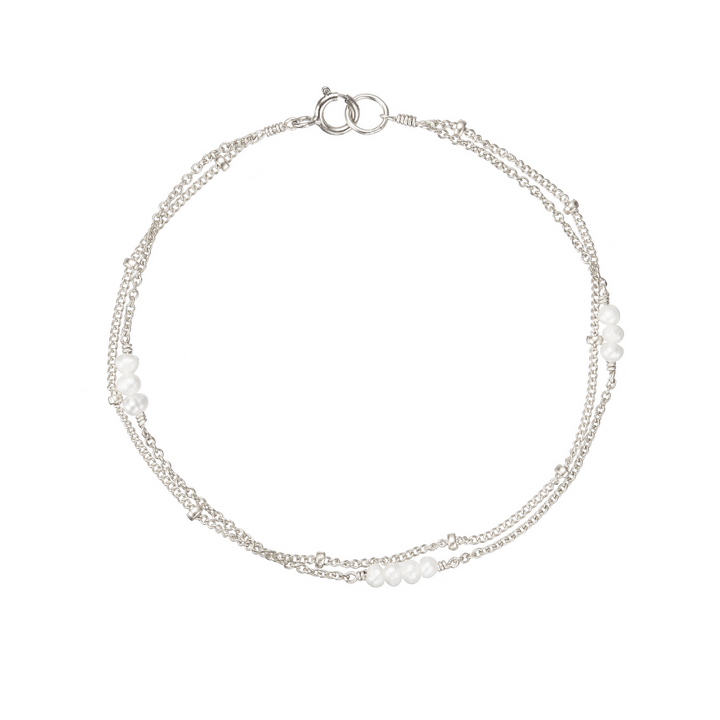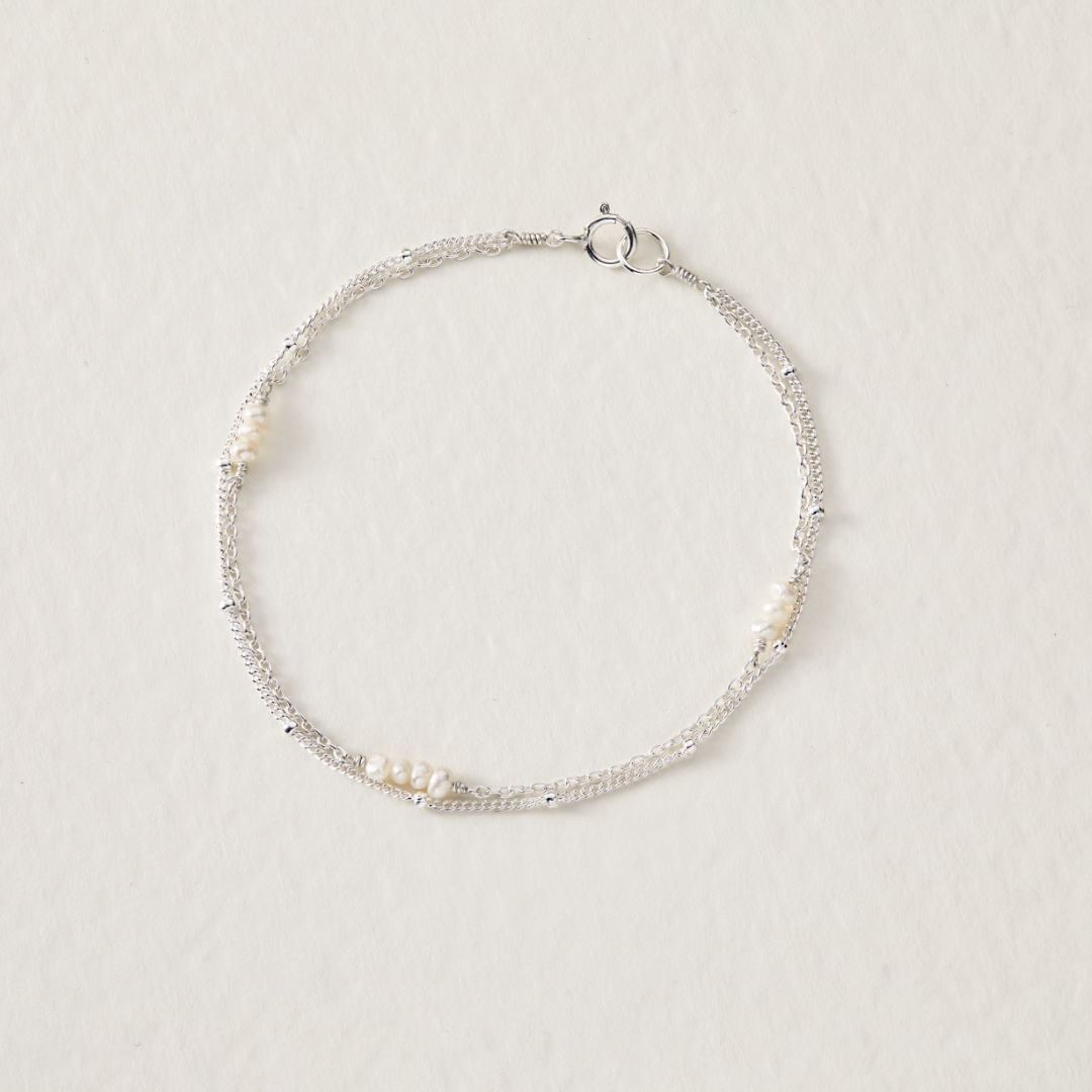 This Silver Layered Satellite Mini Pearl Bracelet by Lily & Roo is a beautiful handmade piece, perfect for elevating any outfit. The delicate design of satellite mini pearls makes this bracelet an ideal statement piece. Pair it with the matching mini pearl necklace and earrings for a coordinated look.