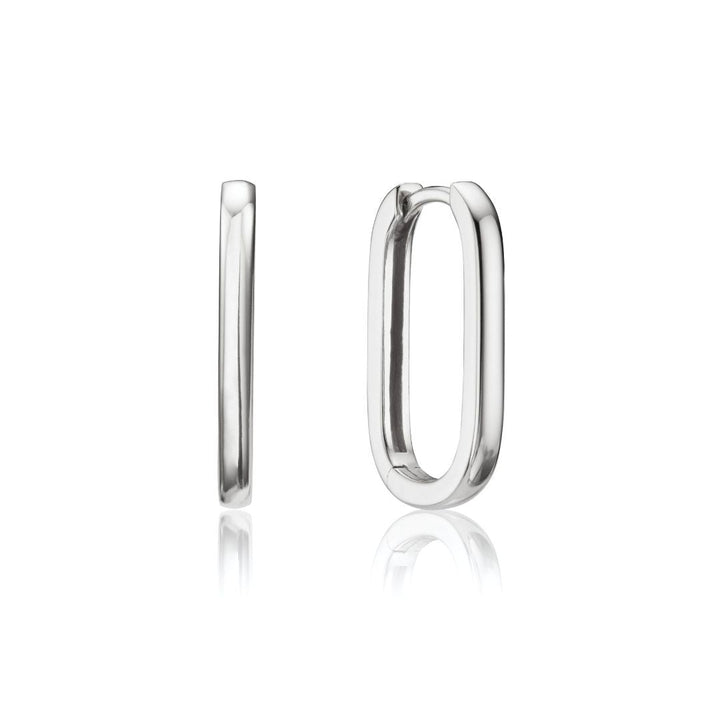 These Silver Long Thin Plain Rectangle Hoop Earrings by Lily & Roo offer a sleek and modern twist on the classic hoop earring. Expertly crafted with 14ct gold plating and 925 sterling silver, these earrings are designed for durability and effortless elegance. Ideal for daily wear, they enhance any outfit with their understated yet contemporary charm.