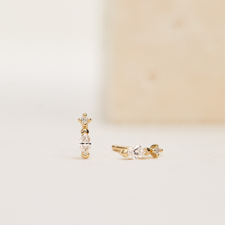 Solid sterling silver with marquise-cut white diamonds. Available in 18K gold-plated sterling silver and 9K solid gold.