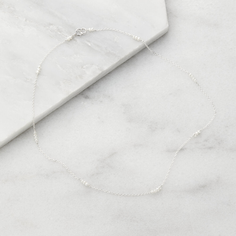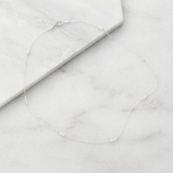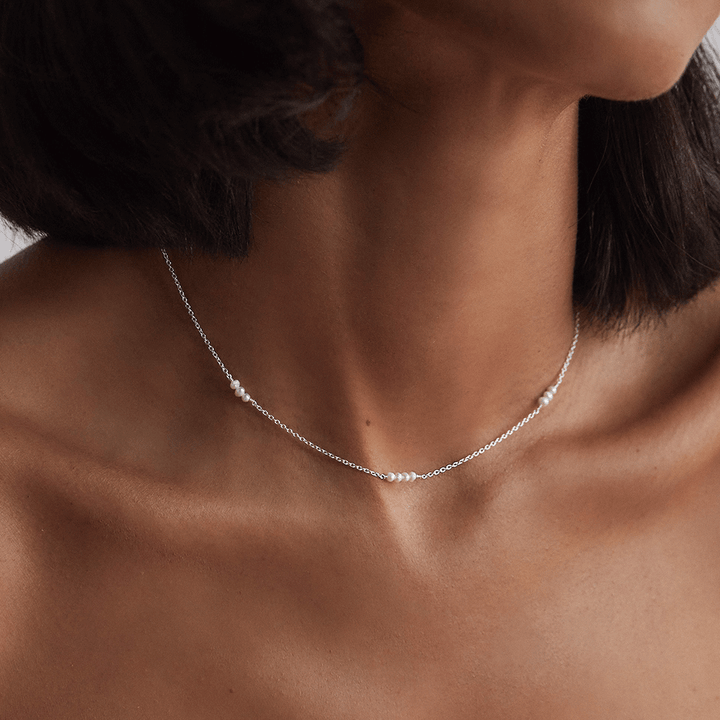 This Silver Mini Pearl Choker by Lily & Roo is a delicate and versatile piece, perfect for any occasion. Handmade in our London studio using ethically sourced freshwater pearls, this choker is ideal for layering or wearing on its own. Perfect for weddings, it’s a beautiful accessory for any bride or bridesmaid.