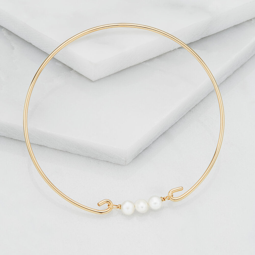 Handmade in solid sterling silver with three genuine freshwater pearls. Available in solid sterling silver and 14ct gold filled.