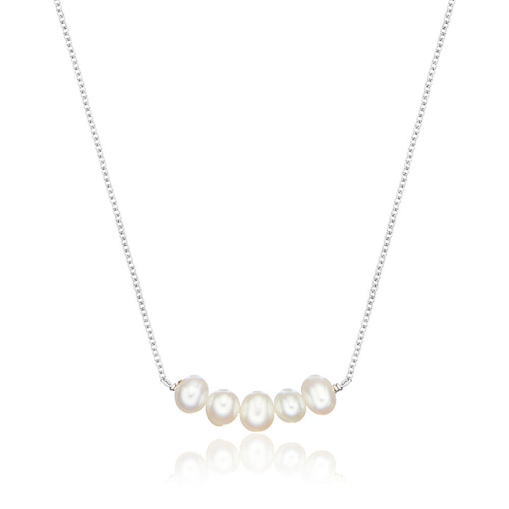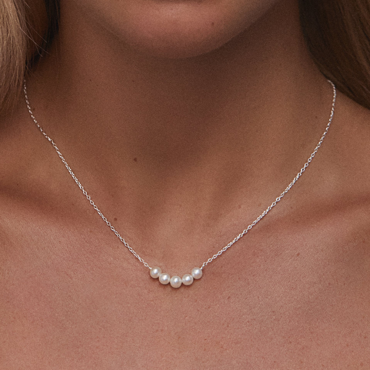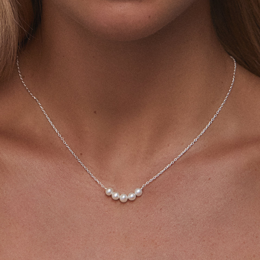 This Silver Pearl Cluster Necklace by Lily & Roo is a beautiful statement piece, handmade with care in our London studio. Featuring a cluster of genuine freshwater pearls, this necklace is both elegant and versatile. It complements bridal and bridesmaid dresses perfectly, but it can also be styled with casual outfits for a sophisticated look. Made with ethically sourced materials, this necklace is as meaningful as it is beautiful.